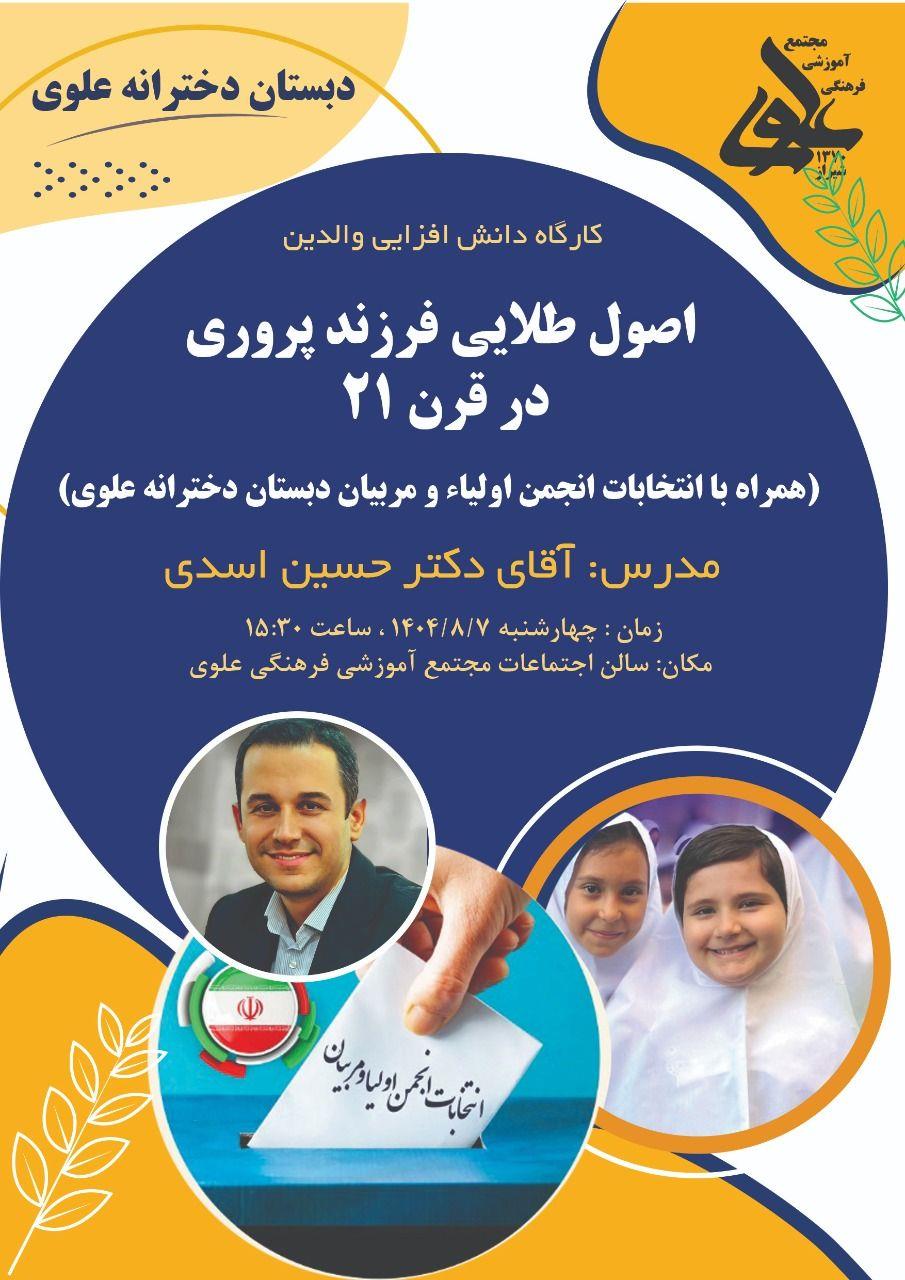 به اطلاع میرساند انتخابات انجمن اولیا و مربیان دبستان دخترانه علوی با هدف تعمیق همکاری میان خانه و مدرسه و جلب مشارکت مؤثر اولیا در پیشبرد امور آموزشی و تربیتی دانشآموزان برگزار میگردد.